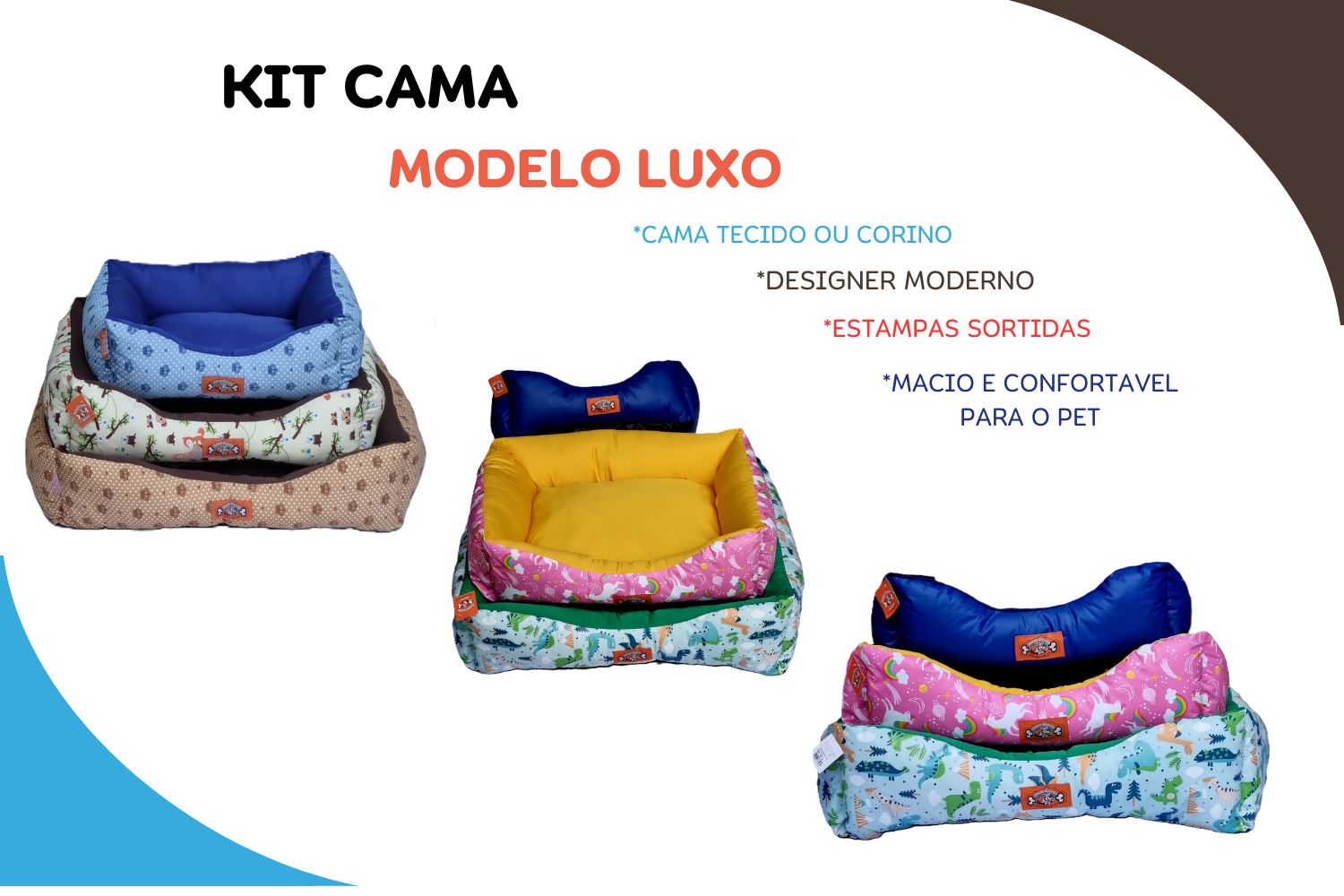 KIT CAMA LUXO EM CORINO OU TECIDO TAM P 37,5X48 TAM M 47,5X57 TAM G 57,5X67