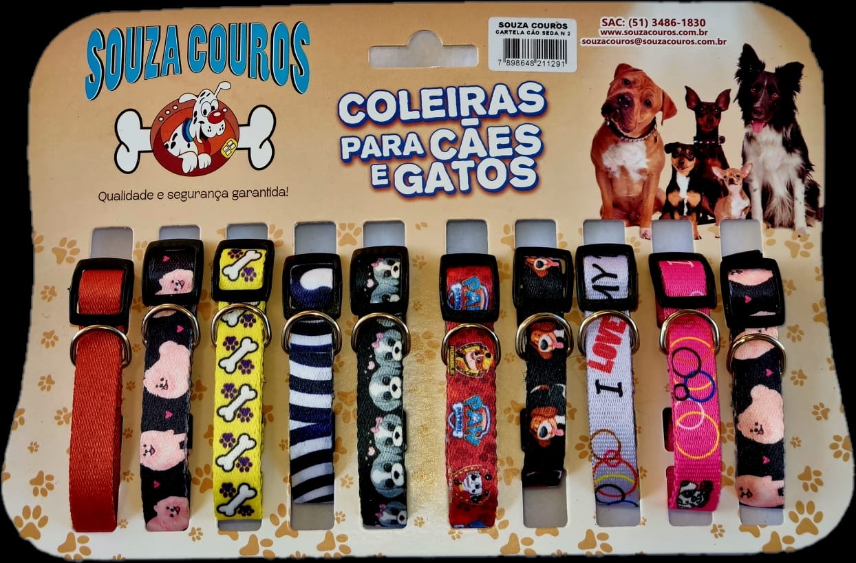 CARTELA DE COLEIRA EM SEDA PARA CÃES COM PINGENTE