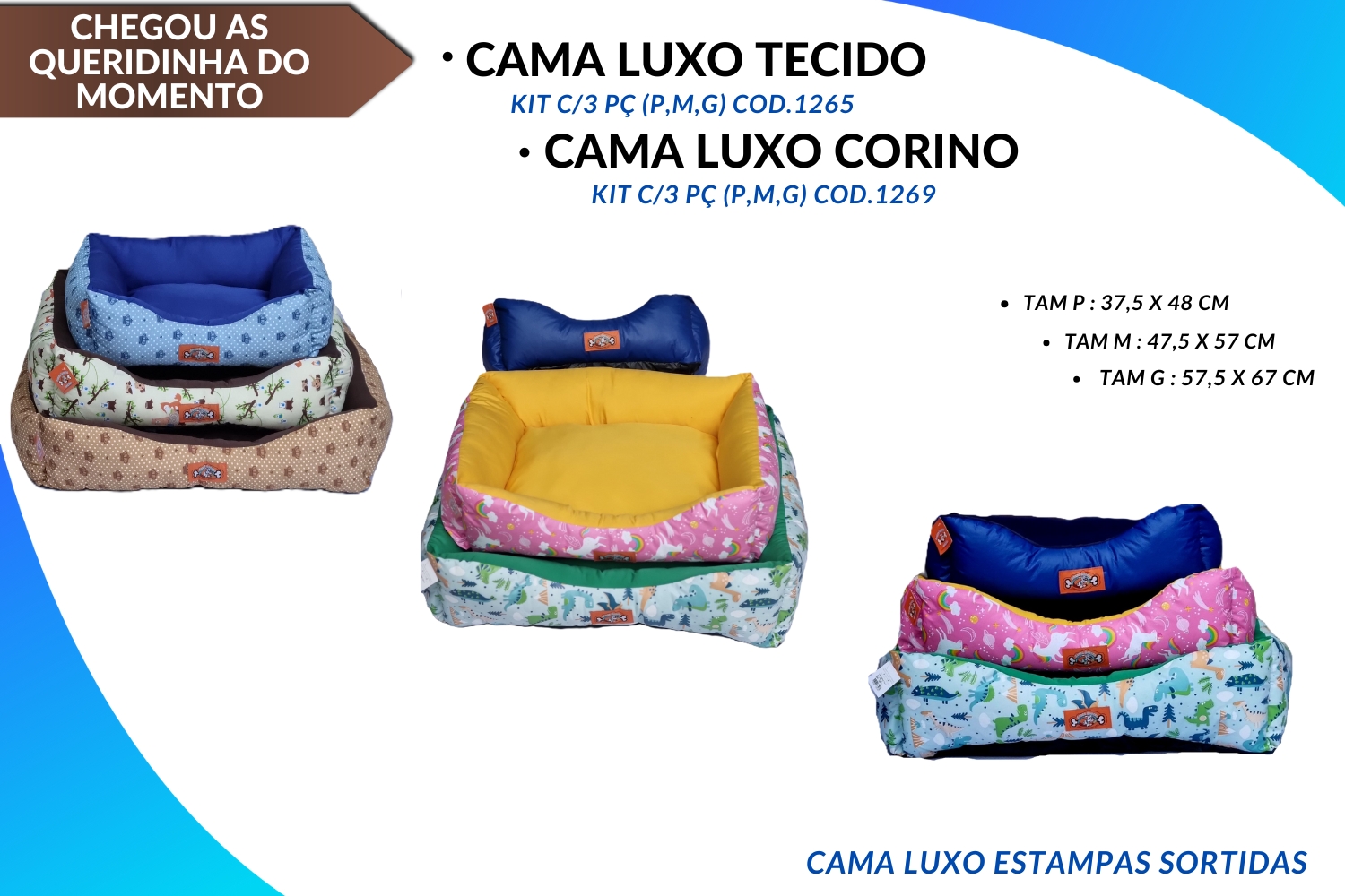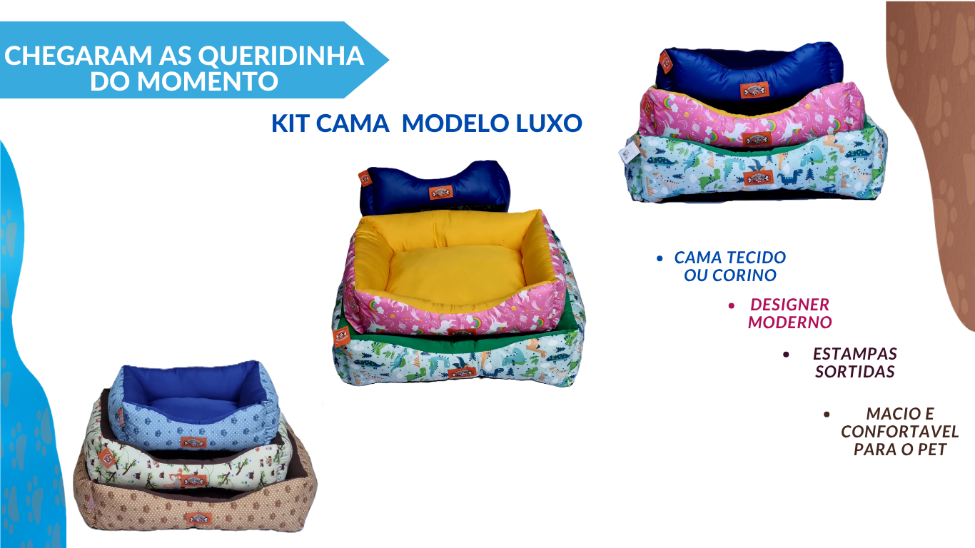 KIT CAMA LUXO EM CORINO OU TECIDO TAM P 37,5X48 TAM M 47,5X57 TAM G 57,5X67