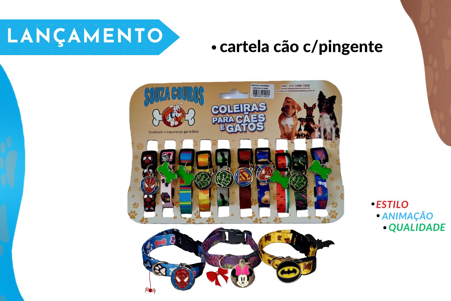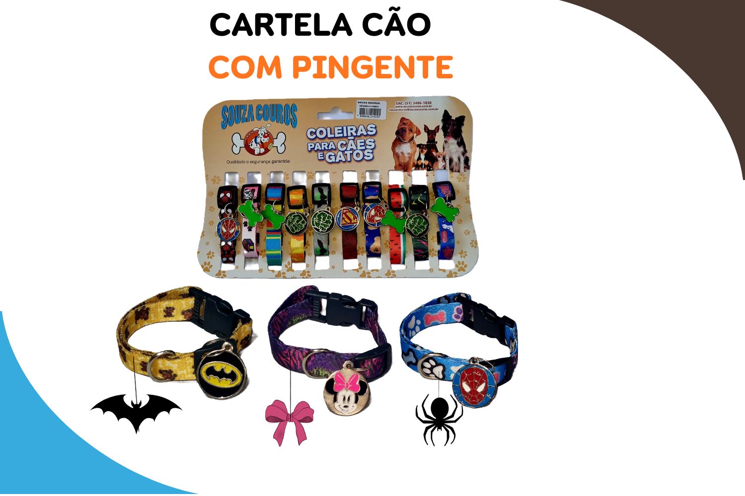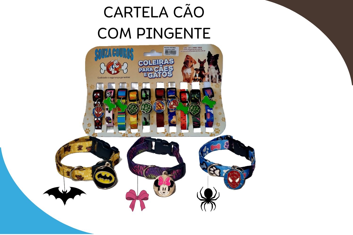 CARTELA COLEIRA EM SEDA PARA CÃO C/PINGENTE