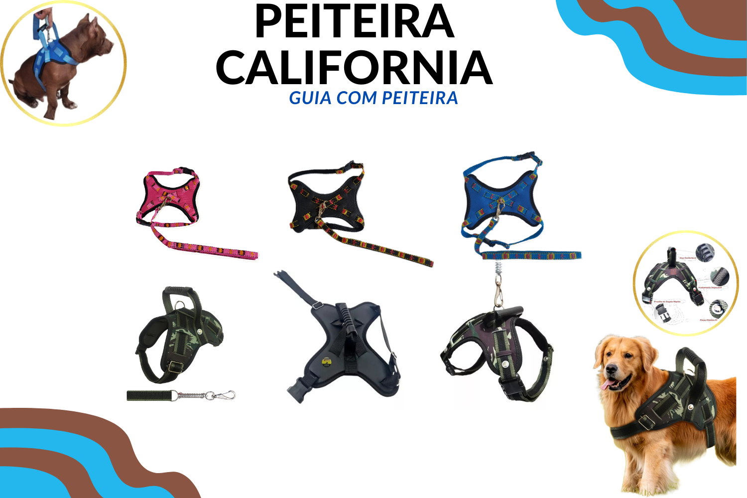 GUIA COM PEITEIRA CALIFORNIA,POSSUI ALÇA CONFORTÁVEL,ACABAMENTO IMPECÁVEL,REBITES REFORÇADOS,PRESILHAS DE ENGATE RÁPIDO,CONFORTO E QUALIDADE PARA SEU PET. ****VENDA POR CONTIDADE*****