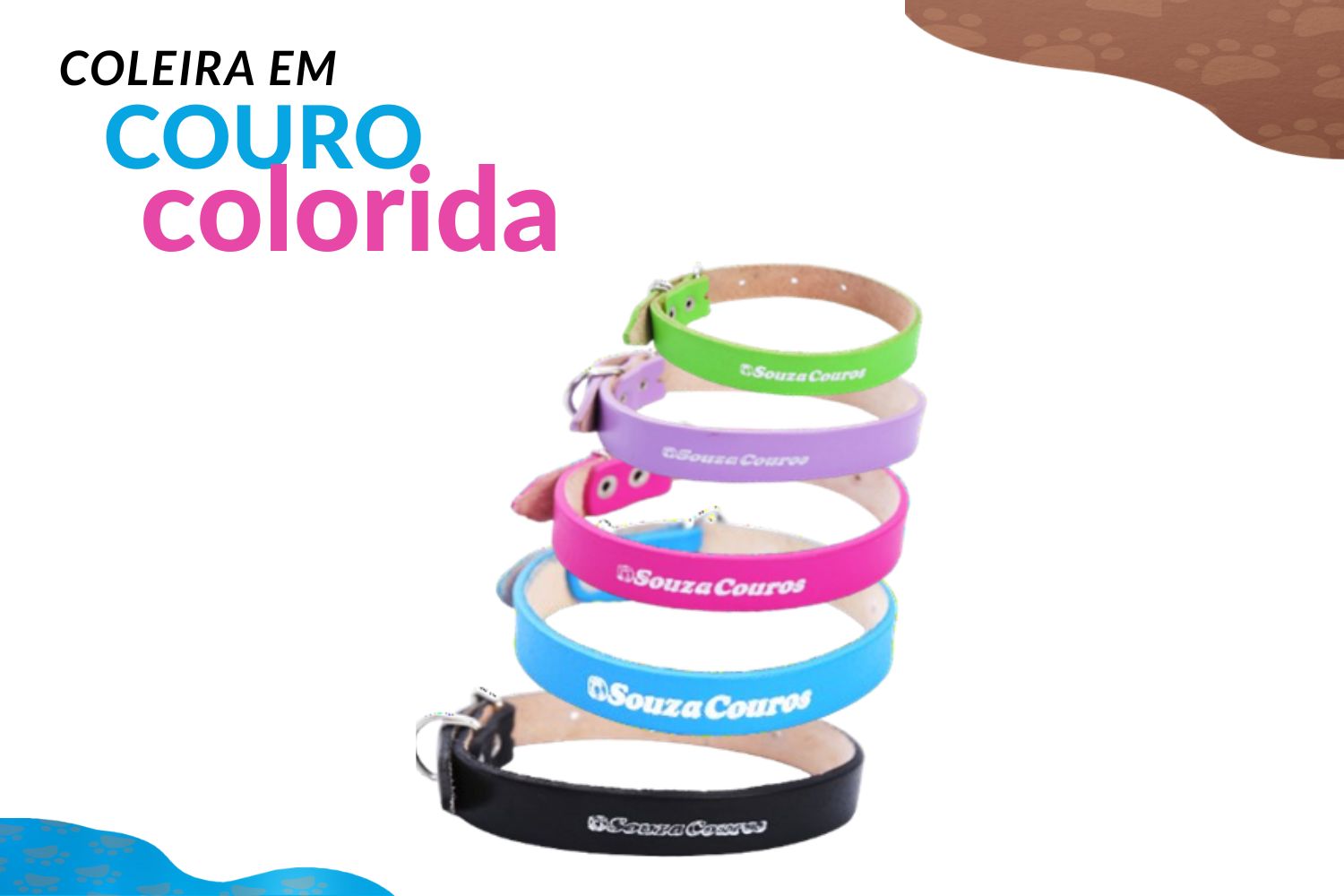 COLEIRA EM COURO COLORIDA VENDA EM QUANTIDADE